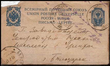 | Keywords: Belotsarsk postcard.jpg <gallery> </gallery> ru Почтовая ка точка отп авленная из инусинска в Белоца ск в 1917 году Personal collection Processed by A Sdobnikov 1917 PD-old Postmarks of Russia Postal cards of Russia Postmarks uncategorised by city |