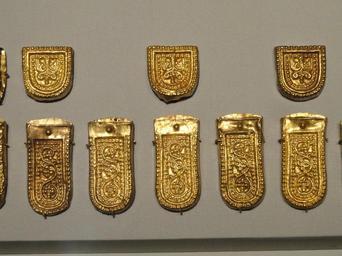 Keywords: Belt buckle and lappet fittings, view 4, Iran, Sasanian period, 7th century AD, silver and gilt (buckle) and gold - Arthur M. Sackler Gallery - DSC05837.JPG en Exhibit in the Arthur M Sackler Gallery Washington DC USA This artwork is old enough so that it is in the public domain Photography was permitted in the museum without restriction 2013-02-12 16 43 04 own Daderot cc-zero Belt buckle and lappet fittings Sackler Gallery Uploaded with UploadWizard |