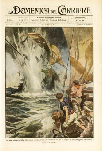 | Keywords: Beltrame mine nel mare Adriatico.jpg en Scan of the first page of the edition of the La Domenica del Corriere an Italian magazine with a drawing of Achille Beltrame depicting an Italian fishing vessel destroyed by Austrian naval mines Adriatic Sea - 1914 it Scansione della prima pagina della rivista La Domenica del Corriere dell'11 ottobre 1914 con una illustrazione di Achille Beltrame raffigurante una nave di pescatori italiani distrutta dalle mine navali austriache 1914-10-11 Scan of the first page of the edition of the La Domenica del Corriere an Italian magazine 1916 Achille Beltrame 1871-1945 other versions PD-Art La Domenica del Corriere covers by Achille Beltrame World War I in October 1914 Naval mines Uploaded with UploadWizard 1914 La Domenica del Corriere |