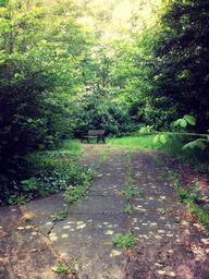 Keywords: bench secret nature green garden park sitting smile outdoor summer reflection seat tree attractive