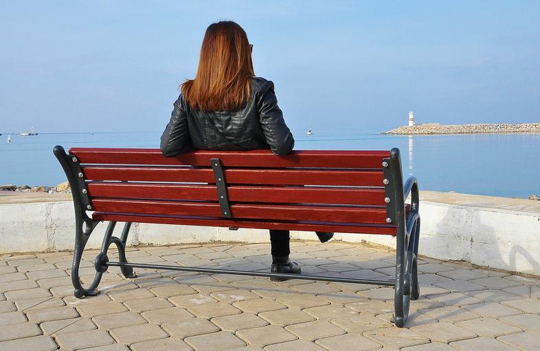 Keywords: bench view women person female looking lady sea