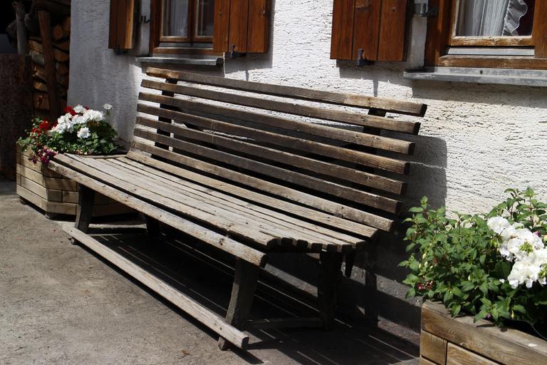 Keywords: bench wooden bench out bank sit home hauswand hof garden at home