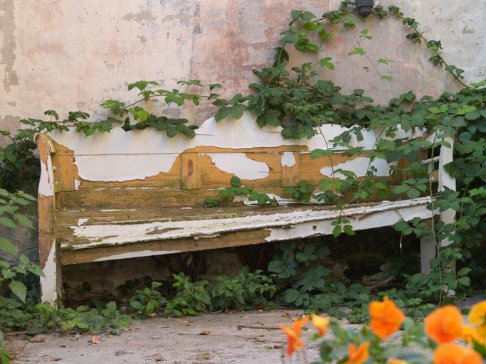 Keywords: bench wooden garden outdoor wood furniture gardening natural decay old