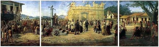 | Keywords: Benedito Calixto - Braz Cubas lê o foral de vila.JPG Artwork Creator Benedito Calixto Braz Cubas lê o foral de vila 1922 Oil on canvas cm 300 900 Museu dos Cafés do Brasil Santos http //www novomilenio inf br/santos/calixtnm htm PD-old-auto 1927 Other versions <gallery> File Fundação_de_Santos jpg Central panel </gallery> Paintings by Benedito Calixto Bolsa do Café 1922 paintings São Vicente São Paulo History of São Paulo Triptychs in Brazil | ||||