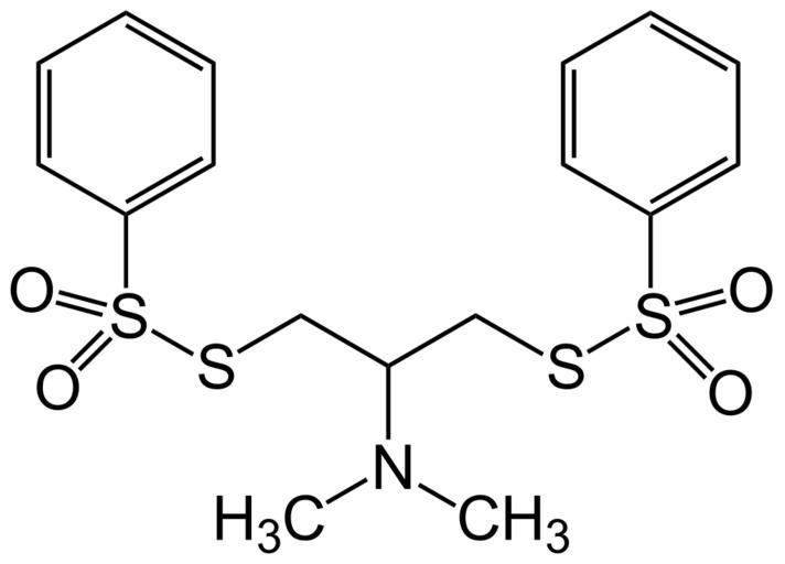 Keywords: Bensultap Structural Formula V.1.svg Bensultap_Structural_Formula own 2013-08-01 Jü Thiosulfonate esters Tertiary amines Phenyl compounds Insecticides Cc-zero