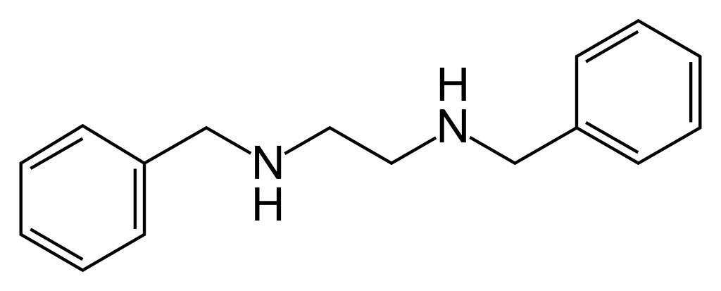 | Keywords: Benzathine.svg validSVG Skeletal formula of benzathine IUPAC name N N ²-bis phenylmethyl ethane-1 2-diamine Created using http //www acdlabs com/download/chemsk html ACD/ChemSketch 10 0 http //www inkscape org Inkscape and http //www vim org vim Own Fvasconcellos 2008-01-01 Ethylenediamine Secondary amines Benzylamines |