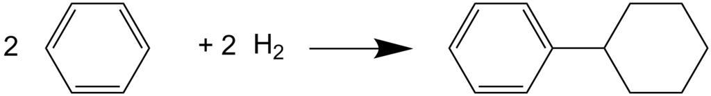 Keywords: Benzene2cyclohexylbenzene.png en Cyclohexylbenzene from benzene via hydroalkylation own Klever 2009-09-09 Organic reactions