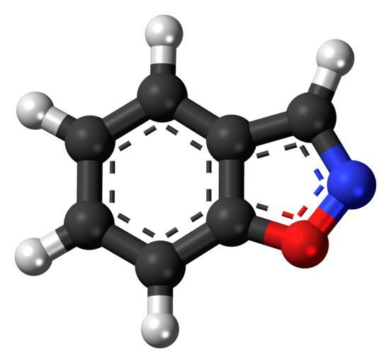 | Keywords: Benzisoxazole-3D-balls.png Ball-and-stick model of the benzisoxazole molecule a nitrogen-oxygen heterocycle and a simple aromatic ring Colour code 505050 Carbon C black<br> F0F0F0 Hydrogen H white<br> F51E1E Oxygen O red<br> 3C50FA Nitrogen N blue<br> 2011-02-10 own DS Visualizer Jynto talk Space-filling version cc-zero Benzisoxazole Images by Jynto Ball-and-stick models | ||||