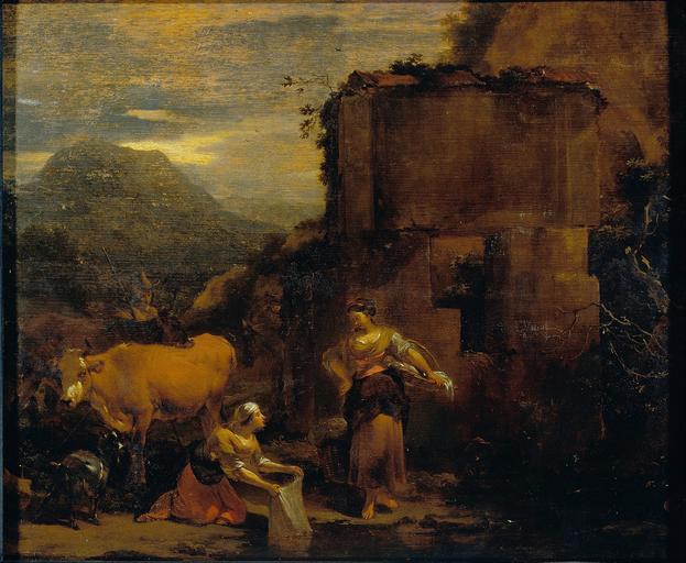| Keywords: Berchem, Nicolaes Pietersz - Washerwomen - Google Art Project.jpg 1620 1620 1683 1683 Nicolaes Pietersz 542105 Berchem 1620 - 1683 /collection/dulwich-picture-gallery/artwork/washerwomen-berchem-nicolaes-pietersz/577083/ Berchem Nicolaes Pietersz Follower of /artist/nicolaes-pietersz-berchem/4128364/ 4128364 /collection/dulwich-picture-gallery/ Dulwich Picture Gallery 363171 http //www dulwichpicturegallery org uk/ 12/28/2011 11 56 44 PM /collection/dulwich-picture-gallery/artwork/washerwomen-berchem-nicolaes-pietersz/577083/ 1620 17th century Dutch Oil Panel London Sir Francis Bourgeois 1811; Bourgeois Bequest 1811 368 577083 False 1683 3/24/2012 5 26 30 AM 337 Painting 1620 1690 w438 x h368 cm 17th century False 1 21615201900238 Object washerwomen-berchem-nicolaes-pietersz Washerwomen w 438 Bourgeois Sir Peter Francis Bequest 1811 Oil London Sir Francis Bourgeois 1811; Bourgeois Bequest 1811 Panel Dutch special url_id 2QG7-vttGj_E8Q PD-old-100-1923 1683 Google Art Project works by Nicolaes Piertersz Berchem Paintings of women doing laundry outdoors |