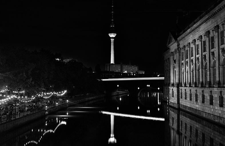 | Keywords: berlin alexanderplatz tv tower capital germany places of interest building contrast black white black and white light reflection mirroring housewife s bahn spree bank promenade dance dancers music band night long exposure museum museum island bridge berlin at night metropolis sightseeing tram river night photograph summer summer night |