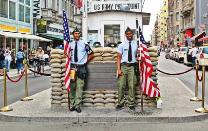 | Keywords: berlin checkpoint charlie border border guard historically frontier house america usa border guards guard flag union jack men black street scene tourist attraction friedrichstraße city germany sector boundary ddr former gdr border berlin wall museum |