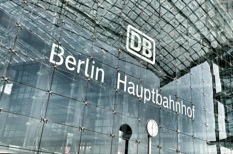 Keywords: berlin germany central station railway station glass facade travel capital building clock