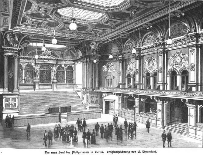 | Keywords: Berlin philharmonie theuerkauf.jpg de Blick in den Saal der Alten Philharmonie Berlin Stich von Gottlob Theuerkauf 1888 Illustrirte Zeitung Band 91 1888 S 605 Gottlob Theuerkauf other versions PD-old-70-1923 Gottlob Theuerkauf Alte Philharmonie Berlin |