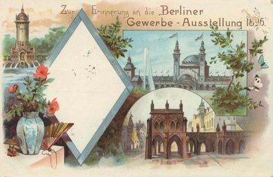 | Keywords: Berlin, Treptow, Gewerbeausstellung 1896, Erinnerung.jpg old picture postcard of Berlin industrial exhibition 1896 in Treptower Park - view of water tower and other buildings alte Ansichtskarte zur Berliner Gewerbeausstellung 1896 im Treptower Park - Ansicht des Wasserturms und weitern Gebäuden http //www digitale-bibliothek de/scripts/ts dll s 6 id 1EBE9D6B mp /art/1722/ sc Deutschland htm Deutschland in alten Ansichten DVD-ROM 1896 Author PD because of age PD-old Berliner Gewerbeausstellung 1896 Postcards of Berlin-Alt-Treptow 1896 postcards of Germany Exhibition postcards Colored postcards |