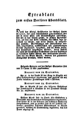 | Keywords: Berliner Abendblätter 1810 005.jpg Berliner Abendblätter Berlin Julius Eduard Hitzig Berliner_Abendblätter_1810_ jpg 004 006 http //www presse uni-wuerzburg de/einblick/abendblaetter/ 1810-1811 Heinrich von Kleist Author died more than 70 years ago - public domain PD-old-100 Berliner Abendblätter |
