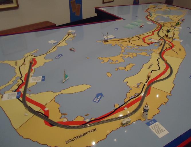 Keywords: Bermuda (UK) image number 256 an interactive display map for young children to learn about Bermuda.jpg en The toy train on this table left slightly above center is electrified and works running the length of the island along the Bermuda Railway Trail in real life the rails of the Railway Trail have been removed so it is a nature trail for most sections I picked up the small electric train car placed it on the rails at St George's on the map and it ran via electric power to the end of the line in Somerset on the map 2016-11-07 11 00 53 own Tomwsulcer other versions cc-zero Models of trains Maps of Bermuda Photographs of maps |