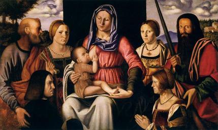 Keywords: Bernardino Luini - Virgin and Child with Saints and Donors - WGA13775.jpg ca 1507 Oil on canvas transferred from wood size cm 78 126 Institution Museo Civico Padua object history credit line accession number WGA link 13775 http //www wga hu/art/l/luini/father/2/virgin_c jpg http //www wga hu/html/l/luini/father/2/virgin_c html painting religious Italian 1501-1550 PD-old-100 WGA form painting WGA type religious WGA School Italian WGA time period 1501-1550 Bernardino Luini Virgin and Child with Saints and Donors Paintings in the Museo Civico Padua 16th-century donor portraits with Madonna 1500s paintings from Italy 1500s paintings in Italy 1507 paintings 16th-century paintings of Christian saints 16th-century paintings of Madonna and Child 16th-century paintings of Saint Paul 16th-century paintings of Saint Peter 16th-century religious paintings in Italy Paintings of Christian saints in Italy Paintings of Madonna lactans in Italy Paintings of Saint Lucy Sacra Conversazione |
