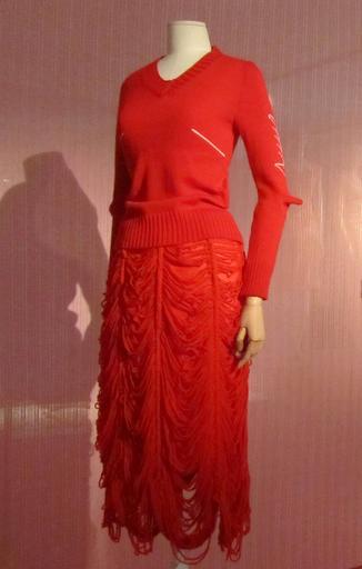 Keywords: Bernhard Wilhelm - jersey sweater.jpg Knitwear exhibition ONTRAFEL Tricot in de Mode at the Fashion Museum ModeMuseum MOMU in Antwerp Belgium The central design is a dress by Walter Van Beirendonck inspired by the colourful clothing of the Hui'an women of Quanzhou China The flanking designs are by the German-born fashion designer Bernhard Wilhelm On the left a jersey sweater with elbows like the heels of a sock and a skirt with alternating strips of knitted wool and loose threads On the right the Beefeater wool jacket and Superflyskirt jersey dress own 2011-04-30 Jvhertum Modemuseum Antwerpen jpg MoMu - Fashion Museum Province of Antwerp Knitwear Bernhard Wilhelm |