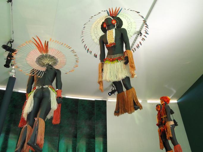 Keywords: Berohokã dress - Memorial dos Povos Indígenas - Brasilia - DSC00591.JPG Exhibit in the Memorial dos Povos Indígenas Brasília Brazil Photography was permitted in the museum without restriction Daderot 2012-05-30 09 07 45 Daderot cc0 cc0 Exhibits in the Memorial dos Povos Indígenas Indigenous textile arts of Brazil |