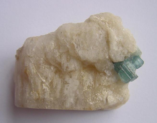 | Keywords: Beryllonite.jpg en Beryllonite whitish with tourmaline variety indicolite blue Locality Paprok Nuristan Province Afghanistan Nuristan Province was formed in 2001 from parts of Laghman and Kunar Provinces Specimen size 4 cm own Strickja 2010-01-05 Phosphates |