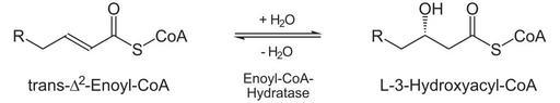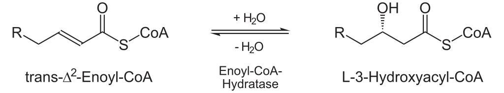 Keywords: Beta-Oxidation2.svg 2 Teilreaktion der Beta-Oxidation 2nd step of beta oxidation own 2007-01-07 NEUROtiker Lipid metabolism Enzyme reactions