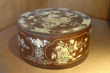 | Keywords: Betel-nut box, shell inlaid, view 2 - Vietnam Museum of Ethnology - Hanoi, Vietnam - DSC02493.JPG en Exhibit in the Vietnam Museum of Ethnology - Hanoi Vietnam Photography was permitted in the museum without restriction 2014-08-03 01 48 12 own Daderot other versions cc-zero Vietnam Museum of Ethnology Uploaded with UploadWizard Areca nut | ||||