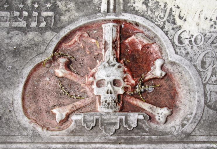 | Keywords: Beth Haim Detail 006.JPG en Detail of a headstone at the Jewish cemetery Beth Haim in Ouderkerk aan de Amstel Beth Haim in Ouderkerk aan de Amstel nl Detail van een grafsteen op de Portugees-Israƫlitische begraafplaats in Ouderkerk aan de Amstel own Janericloebe 2010-06 Beth Haim Reliefs of skull and crossbones Hourglass on Jewish gravestones Grave reliefs of skulls Symbols on Jewish gravestones | ||||