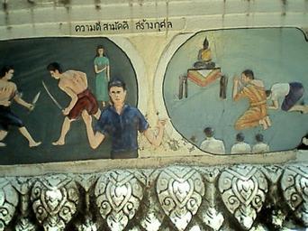 | Keywords: Better a monk.JPG ความดี สามัคคี สร้างกุศล -- Illustrated Proverb Better a monk Phra That Phanom chedi Amphoe That Phanom Nakhon Phanom Province northeastern Thailand 2004-06-21 Pawyi Lee Public domain Proverbs in art Reliefs in Thailand Wat Phra Tat Phanom Thai proverbs |