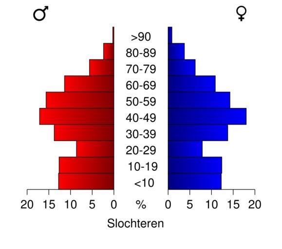 | Keywords: Bevolkingspiramide 2008 - CBS gemeentecode 0040.svg Age pyramids for the municipalities in the Netherlands 1/1/2008 Created in svg with own script Statistics provided by Centraal Bureau voor de Statistiek Voorburg/Heerlen Source Tabel Bevolking; burgerlijke staat geslacht leeftijd en regio 1 januari Tabeltoelichting Gewijzigd op 14 mei 2008 Verschijningsfrequentie per jaar http //statline cbs nl/StatWeb/publication/default aspx DM SLNL PA 03759NED D1 1-2 2c15 D2 118-128 D3 1-4 2c8-9 2c13-19 2c21 2c24 2c26 2c28-30 2c33-36 2c38-40 2c43-44 2c48-49 2c52 2c54 2c56 2c59 2c62 2c64 2c67-71 2c78 2c80-84 2c86-89 2c91 2c93-98 2c101 2c103-107 2c109 2c111-112 2c115 2c118-119 2c121-124 2c126-127 2c130 2c132-134 2c136 2c138-141 2c143-144 2c146 2c151 2c154 2c156-157 2c159-160 2c162-163 2c166-167 2c169 2c171 2c177-179 2c181-182 2c184 2c187-189 2c191-195 2c198 2c201 2c204-205 2c207 2c209 2c211 2c214 2c218-219 2c221-224 2c226 2c228-230 2c233 2c236 2c241-243 2c246-251 2c253 2c257-262 2c265 2c271-274 2c276 2c278 2c282 2c284 2c286-290 2c292 2c294 2c296 2c298-299 2c301-303 2c306 2c312-314 2c317-318 2c321-322 2c327 2c329 2c332 2c334-335 2c337 2c339 2c344-346 2c349-353 2c355-358 2c361 2c363-366 2c368 2c370-373 2c380 2c382-383 2c386-391 2c393-395 2c399 2c403-406 2c408-409 2c412 2c416-417 2c419 2c421-422 2c424 2c426-430 2c432-433 2c439-441 2c447-448 2c450-452 2c455-456 2c458-459 2c462-463 2c465 2c468-469 2c471 2c476 2c478-479 2c481-482 2c484-486 2c489 2c491-492 2c496 2c498-500 2c503 2c505-507 2c512-516 2c519-521 2c523-524 2c528-532 2c534 2c536 2c540 2c542-543 2c546-550 2c552-555 2c560-561 2c564-565 2c567-568 2c572-573 2c577-580 2c586 2c588-594 2c597 2c599-603 2c605 2c609-610 2c612-614 2c617 2c619 2c621-624 2c628 2c630-631 2c633 2c636-637 2c640 2c646-647 2c649-651 2c653 2c655-661 2c663-664 2c666 2c668-670 2c673 2c675-681 2c683-684 2c686 2c689-690 2c693 2c695-696 2c698 2c701-702 2c706-710 2c717 2c719 2c721-722 2c724-725 2c727 2c732-733 2c735-742 2c746 2c750-752 2c756-757 2c759 2c761 2c763-764 2c766-769 2c771-772 2c774-775 2c777 2c779 2c783 2c785-788 2c791-793 2c796-797 D4 l HDR T STB G1 2cG2 2cG3 VW D StatLine own work using CBS data 2009-01 Michiel1972 Own work all rights released Public domain Population pyramids of municipalities of the Netherlands 2008 |