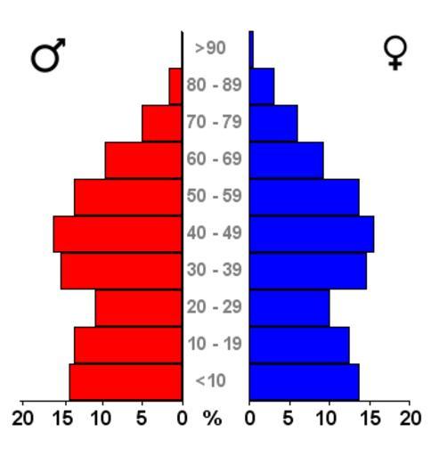 Keywords: Bevolkingspiramide - Gemeente Woerden (2007).png Age pyramids for the 443 municipalities in the Netherlands Data 2007 Statistics provided by Centraal Bureau voor de Statistiek Voorburg/Heerlen Source Tabel Bevolking Nederland per gemeente en diverse regio's naar leeftijd geslacht en burgerlijke staat 1 januari 1988-2007 Gewijzigd op 24 mei 2007 http //statline cbs nl/StatWeb/start asp LA nl DM SLNL lp Search 2FSearch on-line database StatLine Bevolkingspiramide - Gemeente Woerden 2007 png field Population pyramids of municipalities of the Netherlands 2007 Woerden |
