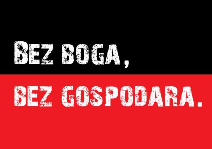 | Keywords: Bez boga, bez gospodara v1.svg en Bez boga bez gospodara No god no master in Croatian slogan used in atheist campaign in 2009 Vector version hr Slogan »Bez boga bez gospodara « korišten u ateističkoj kampanji 2009 Vektorska verzija http //blog dnevnik hr/catwalk/2009/03/index html dan12 Slogan dostojan Zagreba nastavak <small>http //img144 imageshack us/img144/8291/porukatramvaj jpg raster version </small> Ženska mreža Hrvatske <small>http //www index hr/vijesti/clanak/novi-udarac-crkvi-uskoro-ateisticki-natpisi-na-tramvajima--bez-boga-bez-gospodara/446468 aspx source </small> Conquistador <small> vectorisation </small> 2015-01-15 04 11 UTC <gallery> File Bez boga bez gospodara v2 svg </gallery> CC-0 trademark Atheism in Croatia |