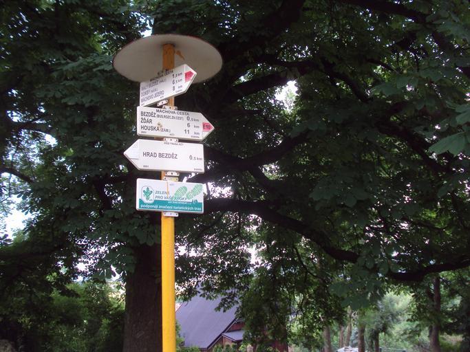 Keywords: Bezděz rozcestník 4.JPG cs Rozcestník v obci Bezděz own Zákupák 2013-07-11 Bezděz Hiking and footpath fingerposts in Česká Lípa District Labels of walking route E10 in Česká Lípa District