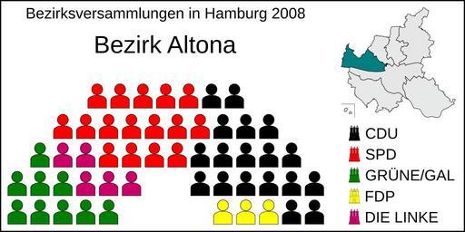 | Keywords: Bezirksversammlung 2008 Altona.svg de Sitzverteilung der Bezirksversammlung Altona nach der Wahl vom 24 02 2008 unter verwendung von teilen von 20px und von der karte 20px DLiebisch Election apportionment diagrams of Hamburg Bezirksversammlungen Altona 2008 Bezirk Altona Bezirksversammlung 2008 |