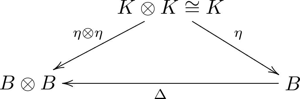 | Keywords: Bialgebra4a.svg en Made with LaTeX and inkscape own Snubcube 2010-08-22 LaTeX Source \documentclass article \usepackage xy \xyoption all \begin document \pagestyle empty \ \xymatrix K \otimes K \cong K \arld_ \eta \otimes \eta \arrd \eta \\ B \otimes B B \arll \Delta \\ \ \end document Check categories 2010 August 24 en wikipedia Bialgebra 3 Multilinear algebra Category theory Abstract algebra Images with LaTeX source code | ||||