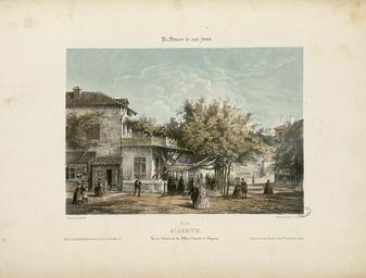 | Keywords: Biarritz - Vue de l'Entrée de la Ville à l'arrivée de Bayonne - Fonds Ancely - B315556101 A MERCEREAU 7 059.jpg Impression en 3 coul par Frick frères à Paris Fait partie d'un ensemble de recueils de lithographies de Mercereau composés de lithographies provenant de La France de nos jours vaste suite publiée par livraisons de 1853 à 1876 et comprenant 475 planches en deux tirages l'un à deux teintes noir et bistre l'autre en couleurs Les libraires ont réuni ces planches en albums de composition variable quant au nombre de planches et aux dessinateurs Asselineau Mercereau Maurice Deroy etc Un titre Les Pyrénées par Ch Mercereau; Bagnères-de-Luchon par Ch Mercereau était frappé sur le plat supérieur de la reliure de l'album ainsi que le nom du Libraire pour lequel il était réalisé La plupart des recueils de ces planches pyrénéennes portent le nom de Sajous libraire à Bagnères-de-Luchon Pl 1 à 18 numérotées de 370 à 386 Pl 374 pl 5 et 6 en double -- Pl 19 20 et 21 numérotées respectivement 407 415 et 418 Ces trois pl ont été dessinées et lithographiées par Asselineau -- Pl 22 23 et 24 numérotées 438 439 et 440 -- Pl 22 lith par Aubrun -- Pl 25 numérotée 441 -- Pl 26 à 40 numérotées de 327 à 341 -- Pl 41 à 46 numérotées de 363 à 368 -- Pl 47 numérotée 369 -- Pl 48 num 292 -- Pl 49 et 50 num 264 et 265 -- Pl 51 et 52 num 268 et 269 -- Pl 53 à 55 num de 293 à 295 -- Pl 56 num 300 -- Pl 57 à 59 num de 307 à 309 -- Pl 60 à 70 num de 316 à 326 -- Pl 71 num 63 dessin et lith d'Asselineau imprimerie Destouches -- Pl 72 et 73 num 87 et 88 dessin et lith d'Asselineau imprimerie Destouches -- Pl 74 num 124 signée Lebreton éditée chez Lalonde à Paris et imprimée chez Becquet frères à Paris -- Pl 75 num 161 dessin et litho d'Asselineau imprimerie Destouches --Pl 76 à 78 num de 207 à 209 -- Pl 79 à 81 num de 211 à 213 -- Pl 82 num 220 dessin et lith de Maurice imprimerie Destouches -- Pl 83 à 86 num de 226 à 229 -- Pl 87 et 88 num 234 et 235 -- Pl 89 à 91 num de 273 à 275 -- Pl 92 et 93 num 290 et 291 Pièces jointes 6 pl sépia dont certaines sont des doubles du recueil de Mercereau Les cinq premières planches sont numérotées respectivement 318 321 324 331 386 La dernière planche n'est pas extraite de La France de nos jours mais de L'Espagne pittoresque et monumentale Ces six planches sont signées Mercereau éditées chez Sinnet et imprimées chez Frick frères Ancely René 1876 - 1966 Possesseur fre public domain domaine public B315556101_A_MERCEREAU_7_059 jpg image/jpeg 1 f de pl lithogr ; 32 cm oblong Frick frères Imprimeur Sinnet F Éditeur Mercereau Charles 1822-1864 Lithographe http //numerique bibliotheque toulouse fr/collect/general/index/assoc//ark /74899/B315556101_A_MERCEREAU_7_059 dir/B315556101_A_MERCEREAU_7_059 jpg Bibliothèque municipale de Toulouse A-MERCEREAU 7-59 Creator Gaspard Gobaut http //catalogues toulouse fr/web2/tramp2 exe/do_keyword_search/log_in setting_key BMT1 servers 1home query p001683 St Jean-de-Luz intérieur de l'Eglise St Jean-de-Luz le Château de l'Infante Biarritz Vue générale prise du Phare Château de Mauvesin près Bagnères-de-Bigorre Hautes Pyrénées Bagnères de Bigorre Hautes Pyrénées - Intérieur de l'Eglise des Carmes en couleurs Bagnères de Bigorre Hautes Pyrénées - Intérieur de l'Eglise des Carmes Bagnères-de-Bigorre - Eglise et couvent des Carmes Bagnères-de-Bigorre Hautes-Pyrénées - Tour des Jacobins Cascade et Pont de Magenta Vallée de l'Esponne Hautes Pyrénées Cascade de Trémes-Aïgues Vallée de Grip Hautes Pyrénées St Sauveur Hautes Pyrénées - Le Pont Napoléon Bayonne - Eglise St André Arreau et la Vallée d'Aure Hautes Pyrénées - Vue prise au dessus de la route du Col d'Aspin Auch - Vue prise sur les bords du Gers Auch - Vue de la Cathédrale Auch - Intérieur de la Cathédrale Bagnères-de-Bigorre - Vue Générale prise de la Fontaine ferrugineuse Eaux-Bonnes Basses-Pyrénées - L'établissement Thermal et la Chapelle Nantes - Vue de l'Eglise Ste Croix Le Croisic - Plage des Baigneurs et Etablissement de Bains Le Folgoët - Vue de l'Eglise Brèche de Roland prise de Gèdres Hautes Pyrénées Eglise des Templiers à Luz Chapelle du couvent de Pouëlahun i e Pouey Lahun - Vallée d'Azun Hautes Pyrénées Le Pont de Scia - Route de Luz à Gavarnie Hautes-Pyrénées Vue de l'établissement de la Raillière près Cauterets Hautes-Pyrénées Vue générale de Cauterets prise du Mamelon Vert Hautes-Pyrénées Vue du Fort de Lourdes Hautes-Pyrénées Vue d'Argelès-de-Bigorre Hautes-Pyrénées Vue de St Sauveur Hautes-Pyrénées Le Pas de l'Echelle Route de Gavarnie Hautes-Pyrénées Fond de la Vallée d'Argelès prise de la terrasse de St Savin Hautes-Pyrénées Place Grammont à Pau Basses-Pyrénées Vue générale des Eaux-Bonnes Basses-Pyrénées Barèges et la Vallée du Bastan Hautes-Pyrénées Chute supérieure du Pont d'Espagne Hautes-Pyrénées La grotte miraculeuse à Lourdes Hautes-Pyrénées Eglise de Bétharram et Pont de Lestelle Basses Pyrénées Cascade du Cerizet Près Cauterets Hautes-Pyrénées Pic du Midi d'Ossau 2885m Basses Pyrénées - Vue prise du 3e plateau de Bious-Artigues Toulouse - Cloître du Musée et Clocher des Augustins Pau - Vue prise de la terrasse du Château Pau - Vue du Château prise du Parc Toulouse - Cloître du Musée Galerie du Moyen-Age Toulouse - La maison de pierre fragment de la façade Toulouse - Intérieur de St Sernin St Jean-de-Luz Fort du Socoa Toulouse - Vue du Capitole Bordeaux Vue de la Porte du Caillau i e Cailhau Bordeaux Porte de la grosse Cloche Bordeaux Vue des Quinconces Bordeaux - Vue de la Tour et de l'Eglise de St Michel Toulouse - Vue du Pont de pierre prise du Quai de Brienne Toulouse - Abside de l'Eglise de St Sernin de l'an 1097 Toulouse - Choeur de la Cathédrale St Etienne Rouen - Hôtel de Bourgtheroulde Biarritz - Vue des Bains Napoléon et du Casino Biarritz - Vue des Bains