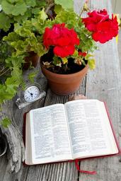 Keywords: bible open book open bible religion christian learning scripture red geranium time devotions bible study faith word holy gospel inspiration reading study spiritual religious meditating studying church