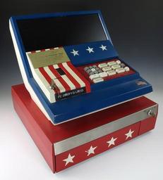 Keywords: Bicentennial Cash Register.jpg en This red white and blue cash register was originally used on the Freedom Train The register is mostly red and blue with white stars painted on the surface A plaque on the register above the keys reads This R C Allen Electronic Cash Register was utilized on the American Freedom Train during its epic journey throughout the United States in commemoration of our Nation ™s Bicentennial / 1776-1976 <br> Note The American Freedom Train was a steam engine train designed by Ross Rowland Jr that travelled across the United States from April 1 1975 to December 31 1976 to commemorate the American Bicentennial The train functioned as a travelling museum with 12 display cars two of which held large objects to be viewed from the ground The artifacts on board the Freedom Train were designed to showcase American history over the past 200 years and included such items as George Washington ™s copy of the Constitution Judy Garland ™s dress from The Wizard of Oz and Martin Luther King Jr ™s pulpit and robes The American Freedom Train was one of the only nation-wide celebrations of the Bicentennial metal 18 H x 19 25 W x 18 5 D Institution Gerald R Ford Presidential Museum http //www fordlibrarymuseum gov/museum/ArtifactCollectionSamples/Catagories/Bicentennial/CashRegister html Cash Register accession number 2006 41 credit line Courtesy of the Gerald R Ford Presidential Museum Donation Date unknown Institution Institution Gerald R Ford Presidential Museum Gerald R Ford Presidential Library and Museum-cooperation PD-USGov United States Bicentennial materials in the Gerald R Ford Presidential Museum Stars and Stripes American Freedom Train Cash registers United States Bicentennial Uploaded with UploadWizard |