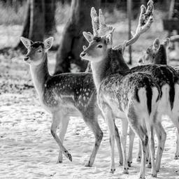 Keywords: biche deer animal herd wild life nature black and white