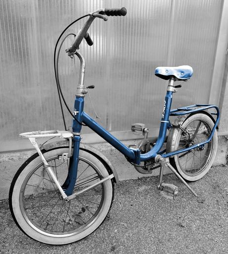 Keywords: bicycle old blue vintage wheels saddle handlebars pedals