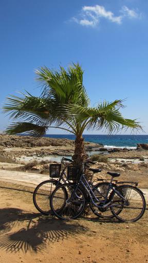 Keywords: bicycle palm tree nature activity summer leisure recreation holidays vacation beach