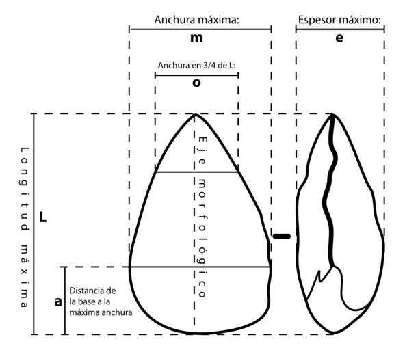 | Keywords: Bifaz dimensiones.svg of an acheulean hand axe Dimensiones básicas para describir un bifaz achelense Mensurations basiques pour un biface acheuléen own 2007-01 José-Manuel Benito Álvarez España > Locutus Borg en Hand axe fr Biface es Bifaz Acheulean Drawings of stone hand axes |