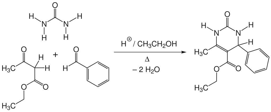 Keywords: Biginelli reaction overview.svg en Overview of the Birginelli reaction de à bersicht über die Birginelli-Reaktion selbst erstellt mit ChemBioOffice 11 LinuxCLP 2011-06-08 Cc-zero Biginelli reaction