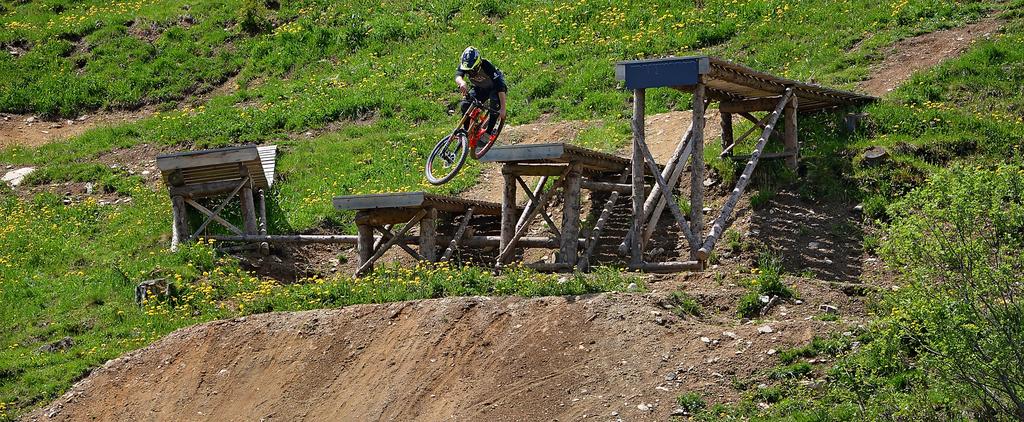 Keywords: bike human person sport bike park obstacle jump action out nature cycling hill