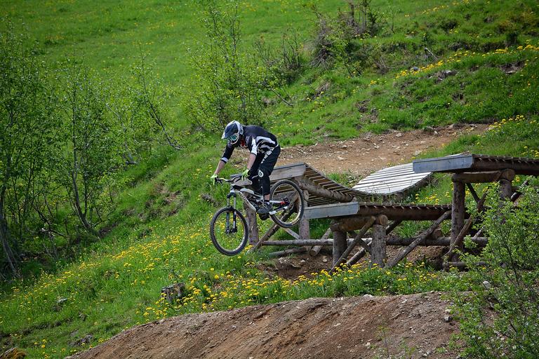 Keywords: bike human person sport bike park obstacle jump action out nature cycling hill bike route terrain trail riding in motion