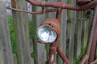 Keywords: bike lamp stainless wheel cycling bicycle lamp bicycle accessories metal broken handle old lighting handlebars past paling wood iron scrap iron scrap metal light bulb brake rusty rust red brown scrap