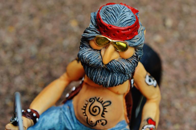 Keywords: biker bike tattooed america cool casual funny man sit joy of life motorcycle two wheeled vehicle fig fun headband jeans