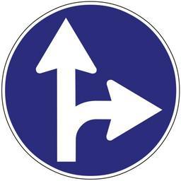 | Keywords: Bild 27 - Vorgeschriebene Fahrtrichtung - Rechts oder geradeaus, StVO 1956.svg de Bild 27 Vorgeschriebene Fahrtrichtung “ Rechts oder geradeaus Für den Blauton wurde das RAL-Farbtonregister 840 R gewählt Der dort verzeichnete Ton ist in der Abbildung wiedergegeben Verkehrszeichen nach den Vorgaben der StVO in der Fassung vom 29 März 1956 Quelle Bundesgesetzblatt Jahrgang 1956 Nr 19 S 360 Tag der Ausgabe Bonn 29 Mai 1956 own Mediatus 2013-09-05 v Cc-zero PD-VzKat Diagrams of regulatory road signs of Germany 1956 set 27 Proceed straight mandatory road signs |