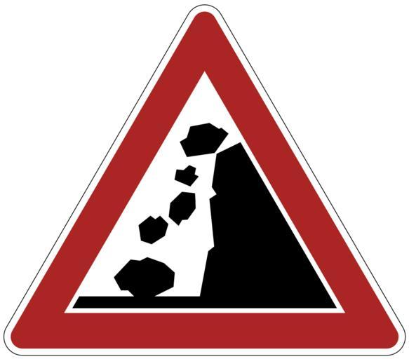 | Keywords: Bild - Steinschlag, StVO 1966.svg de Bild Steinschlag Das Vorbild für dieses Schild ist in einem žTelekurs für Autofahrer des Bayerischen Rundfunks von 1968/1969 sehr deutlich zu sehen und wurde von mir über einem Standfoto nachgezeichnet Für den Rotton wurde damals das RAL-Farbtonregister 840 R gewählt Der dort verzeichnete Ton ist in der Abbildung wiedergegeben Das Zeichen wurde im Rahmen des Vorzugs von Einzelheiten einer Neufassung der StVO 1966 eingeführt own Mediatus 2013-10-18 v Cc-zero PD-VzKat Diagrams of historic road signs of Germany 1966 set |