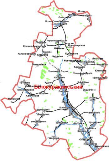 | Keywords: Bilokurakinskyi.png Білоку акинського айону Луганської області Ук аїни азом із автошляхами з тве дим пок иттям залізницею ічками та лісами Ство ено власно уч на основі топог афічної ка ти Генштабу СРСР Dim Grits ; Олег 2013-10-31 Maps of Belokurakinskii rajon |