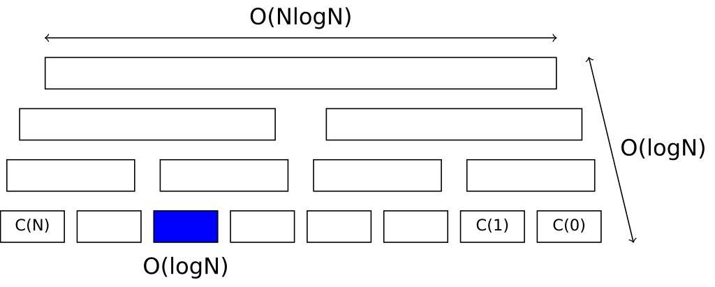 Keywords: Binary Splitting.svg en A product tree 2013-05-06 23 48 41 own MarcMezzarobba TeX/TikZ source <syntaxhighlight lang latex > Compile with htlatex Binary_Splitting tex \documentclass article \usepackageT1 fontenc \usepackage lmodern \def\pgfsysdriver pgfsys-tex4ht def \usepackage tikz \usetikzlibrary calc \usetikzlibrary positioning \begin document \begin tikzpicture \begin scope every node/ style rectangle draw minimum height 1 4em level distance 8mm level 1/ style nodes minimum width 4cm sibling distance 48mm level 2/ style nodes minimum width 2cm sibling distance 24mm level 3/ style nodes minimum width 10mm sibling distance 12mm edge from parent/ style draw none \nodeminimum width 8cm r child node child node child node a \scriptsize C N child node child node child nodefill blue n child node child node child node child node child node child node child node \scriptsize C 1 child node z \scriptsize C 0 ; \end scope \nodebelow 1mm of n O \log N ; \draw<-> r north east + 0 5 0 -- noderight t O \log N z south east + 0 5 0 ; \draw<-> r north west + 0 0 3 -- nodeabove O N \log N r north east + 0 0 3 ; \end tikzpicture \end document </syntaxhighlight> cc-zero Uploaded with UploadWizard Algorithms TikZ diagrams Images with LaTeX source code